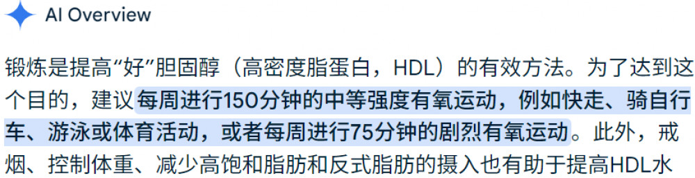 锻炼能提高高密度胆固醇,Google AI是这么说的