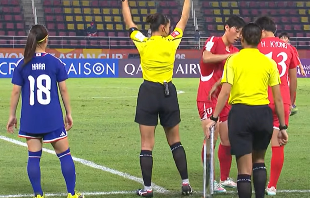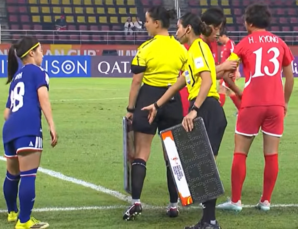 没年龄限制的成年女足比赛,北韩就不很强了。这是现在正在进行的亚洲女足U20(under 20) 决赛日本(蓝衣)对北韩(红衣)的一个镜头。我怀疑北韩派变性人来比赛了。