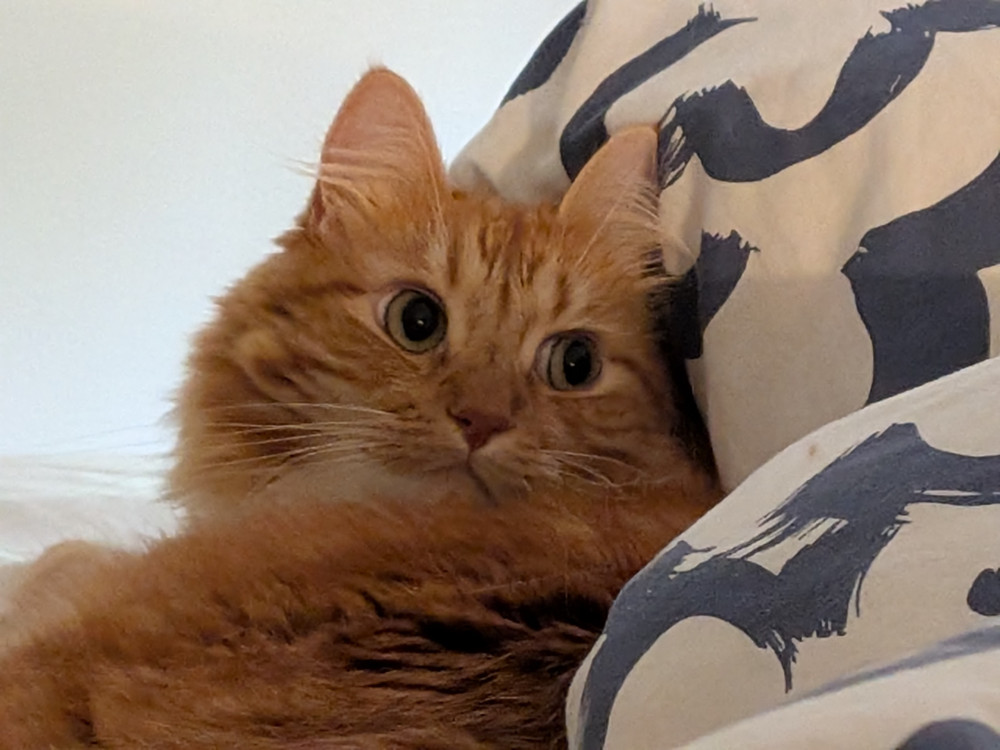 你那猫眼睛干净有神。阿黄睡眼惺忪。
