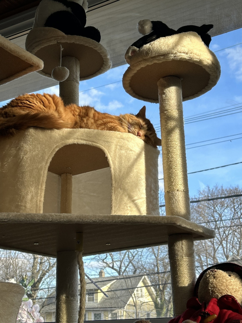 自从搬家把旧总统府捐掉以后一直经费紧张,大家一直靠着挠沙发打发日子,挠烂了单人的又开始挠三人的。趁着黑五勒紧裤腰带添置了新的总统府。看来设计师只考虑了高度却完全忽略了总统的体重,最上边一层完全无法承载总统伟岸的身躯。