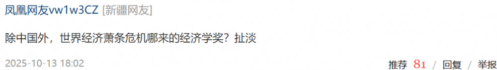诺贝尔经济奖公布。贴个新疆粉红的评论,有很多点赞