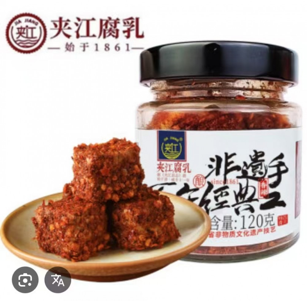 很久不去中超,去了就忍不住东张西望。 突然看见这个夹江腐乳,夹江不是就在乐山附近吗?这个豆腐乳看起来跟小时候吃过的好像。买了一罐子回来,打开尝尝,果真如此。赶紧让娃尝,他细品之后说:这个味道很像奶酪!