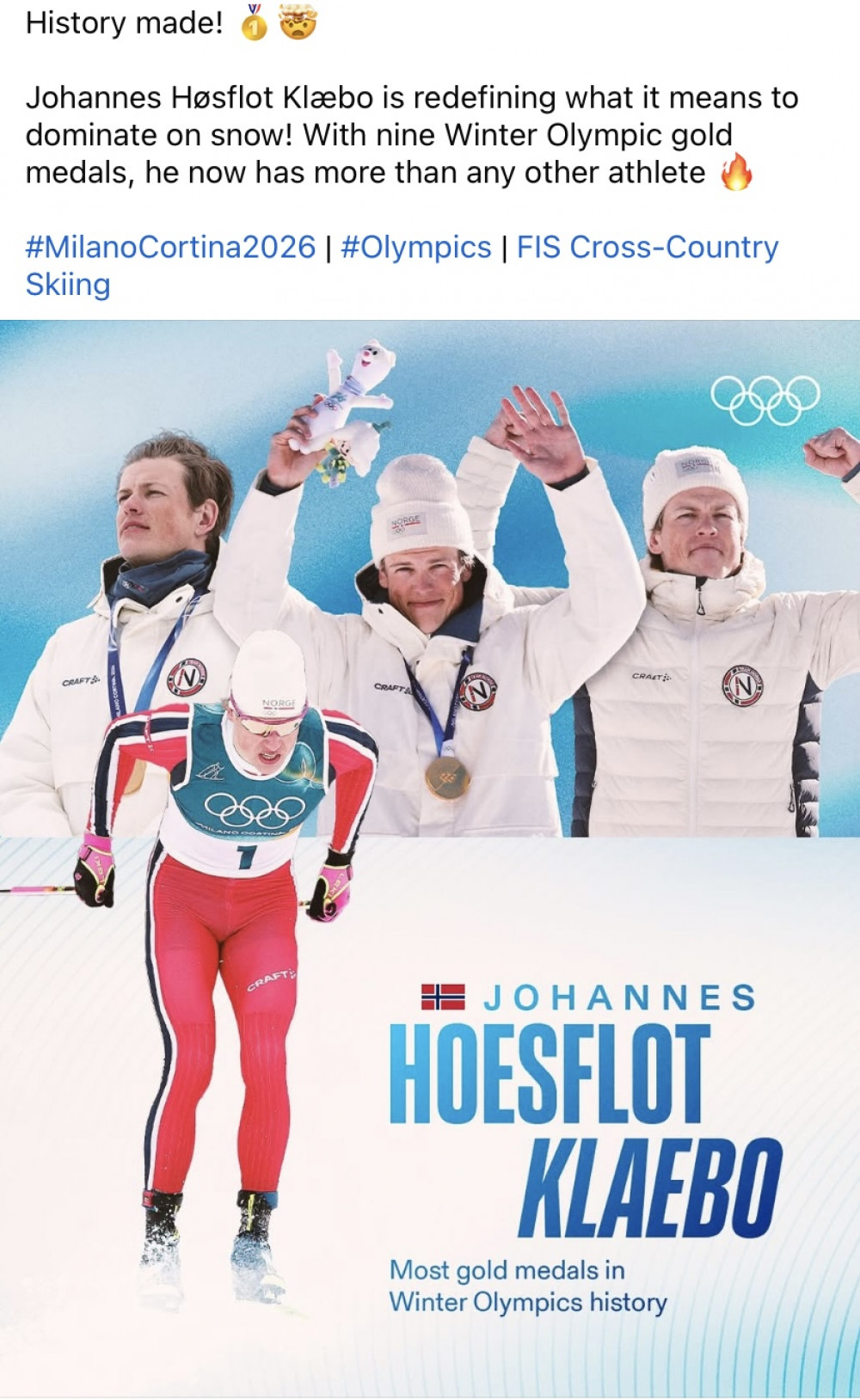 不知道87号能不能上场,这应该是他最后一次冬奥会亮相了。