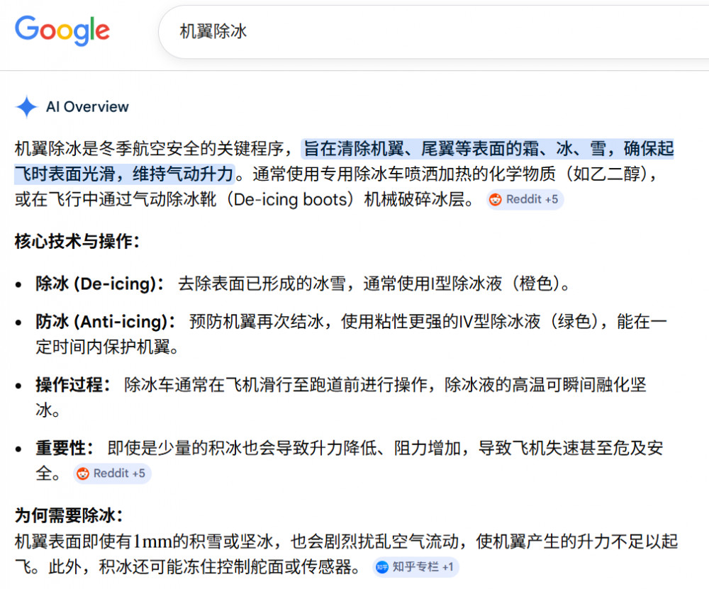 最近在一些机场,看到机翼除冰的操作。桔红色的喷液,很是显眼。查了一下,除冰是为了飞行安全,有道理。