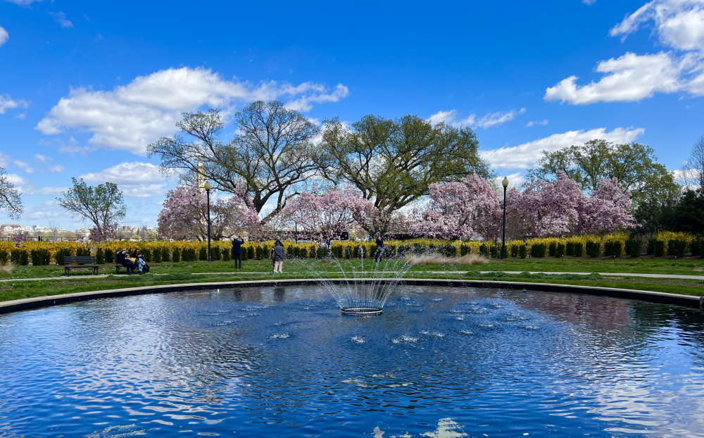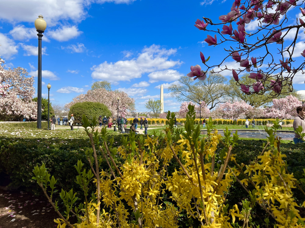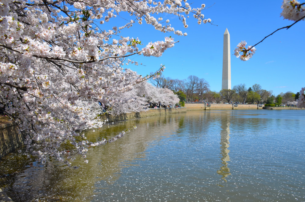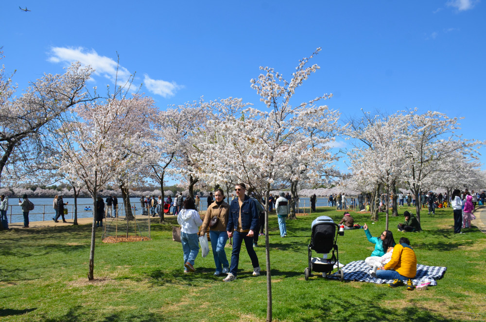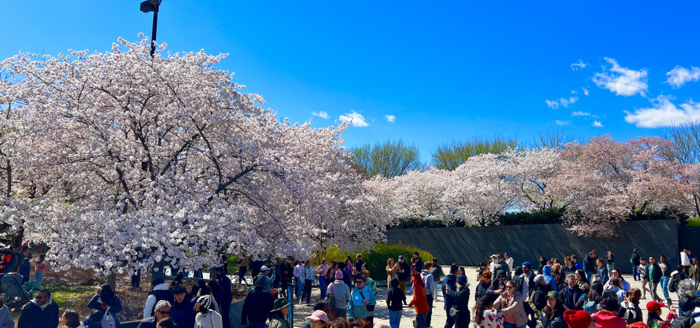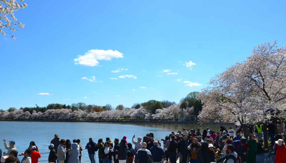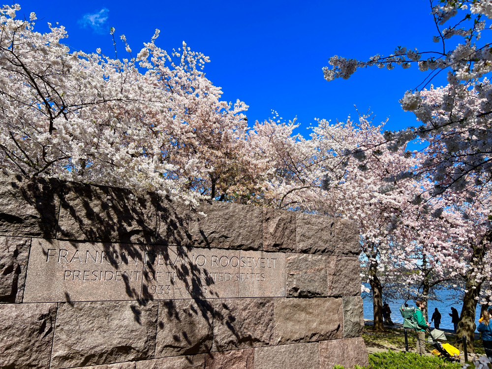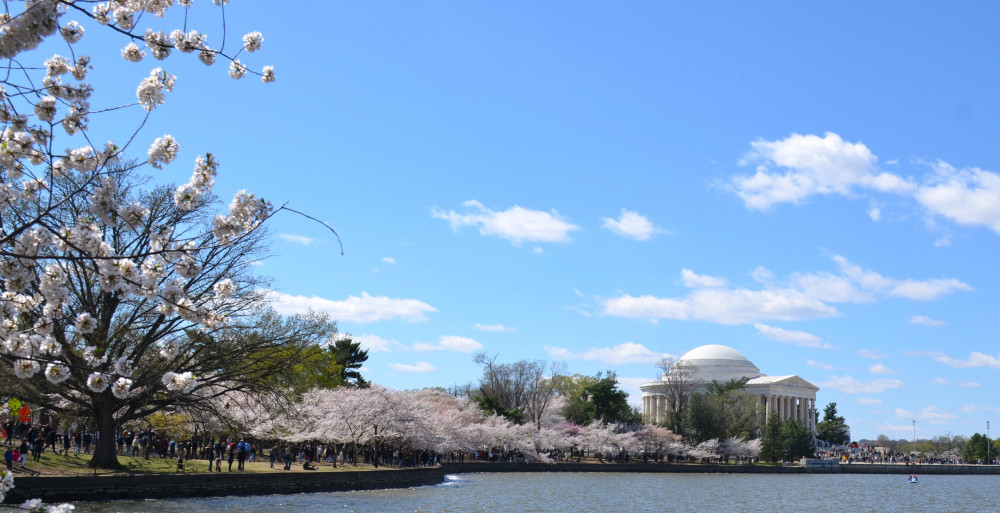 春天让人惊艳的花都有一个共同点:就是花期都很短暂,所谓韶华易逝,樱花就是一个典型的例子。DC的潮汐湖畔是世界著名的赏樱之地,也可以算DC的重要地标。得天独厚的地理条件,配上环湖一圈绽放的樱花,稍有想象力的都不难想像花季高峰的盛景。樱花是日本大和民族的象征,而潮汐湖畔的樱花则是一百多年前的日美亲善的结果,都是当时的日本政府所赠送的。虽然后来两国兵戎相见,甚至日本成为世界上唯一一个尝到美国原子弹核爆威力的国家,但日美亲善的樱花倒没有被殃及池鱼, 每年依然绽放湖畔。今年为了庆祝美国建国250周年,日本首相高市前不久访美还专门送上250株樱花树作为贺礼。当然,今年开放的樱花肯定没有高市首相赠送的樱花了,只能以后才有机会观赏了。