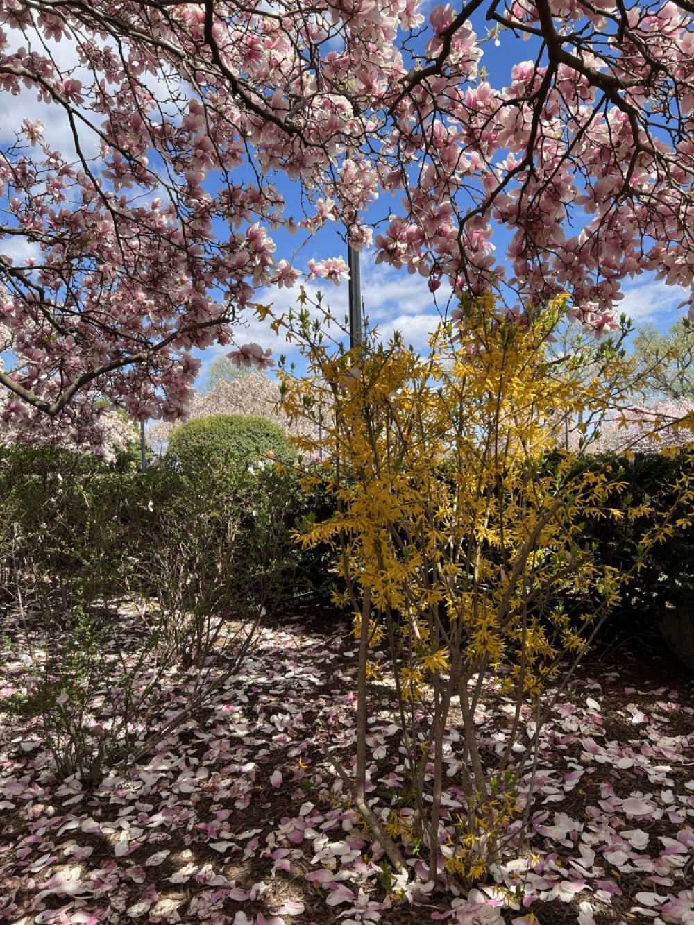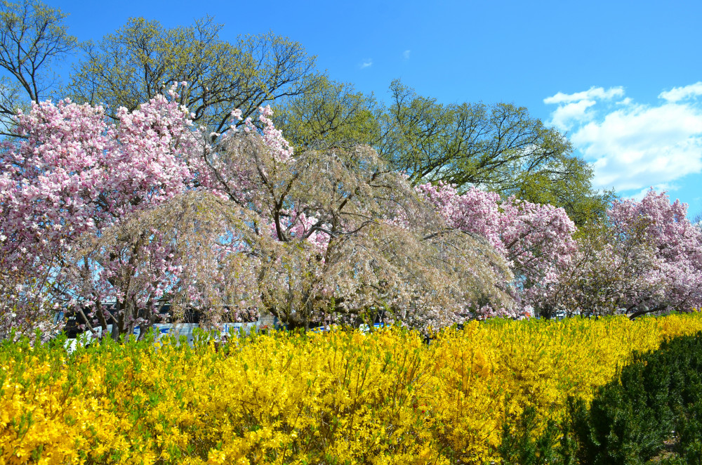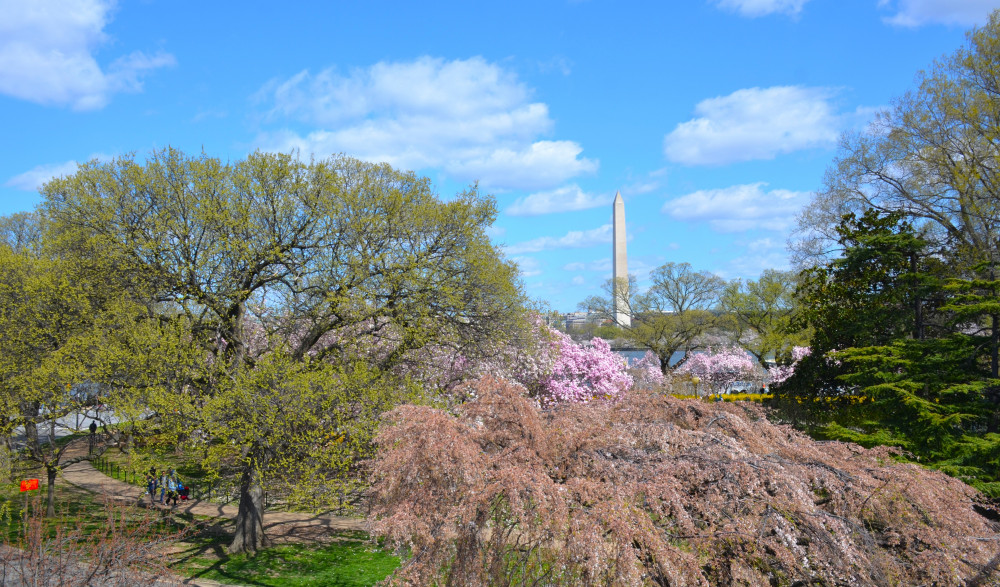 依然是从George Mason Memorial这里出发,绕湖一圈。这里是整个Tidal Basin色彩最丰富的地方,迎春花,玉兰,还有樱花同时绽放。不过这棵垂樱就过季了。