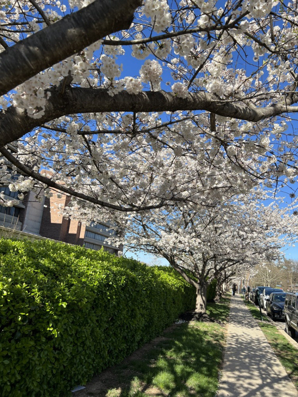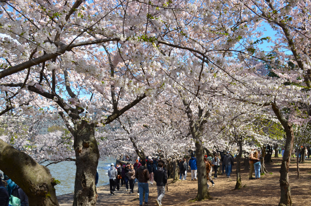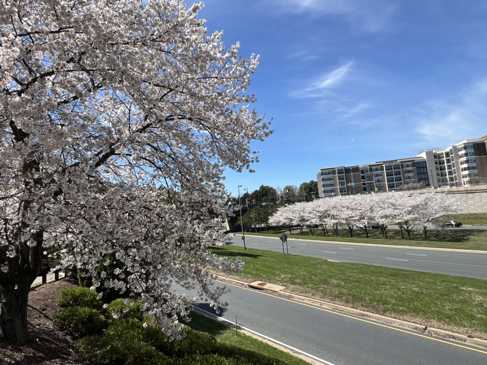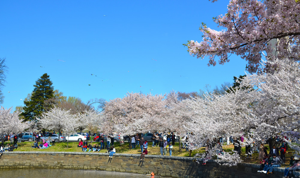 当然,DC的樱花并不仅仅止于潮汐湖畔,虽然只有潮汐湖畔才是最佳赏樱之处。樱花在DC地区一百多年的种植历史,樱花树早就遍布DC的大街小巷。不少街道两旁都是樱花树,除潮汐湖畔之外最著名的观景点是有樱花村美名的DC北郊Kenwood社区,社区两旁的行道树都是樱花树,开花之时蔚为壮观,不过我已经好多年没去了。但不少社区都有一条樱花街,随便走走都能看见道旁的樱花树。