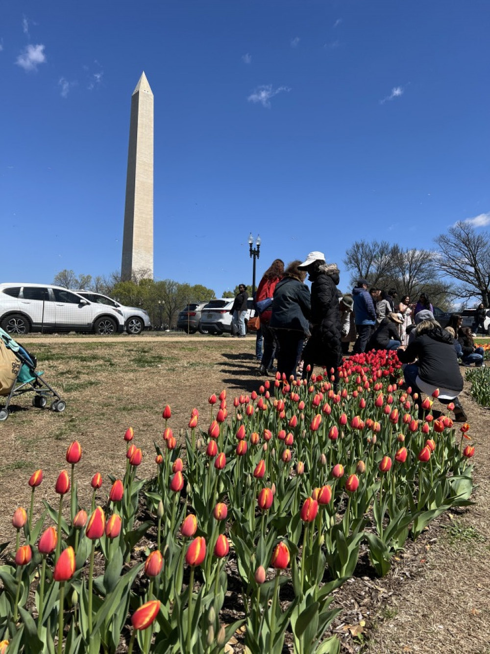 潮汐湖畔旁边还有一块国家公园的领地,每年都会种上郁金香。虽然地方不大,数量也不够多,但品种不少,至少十好几种不同颜色的郁金香。当然,樱花开放时郁金香还差点火候,只开了不多几种。要想目睹郁金香的艳丽,就得过一,两周再去一趟。