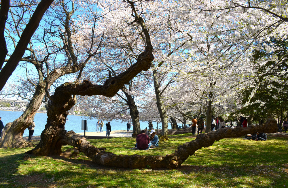 樱花高峰期可以算作DC的节日,风和日丽,游人熙熙,树下随时就有席地而坐野餐的家庭。