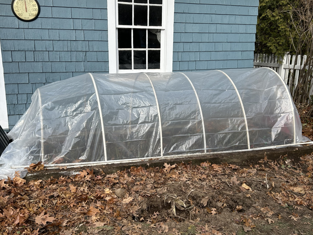 昨天冒雨挖坑栽下月季。今天一早又搭了个简易大棚,希望我这一地的月季都可以成活安然渡过寒冷冬季,明年不负春光。