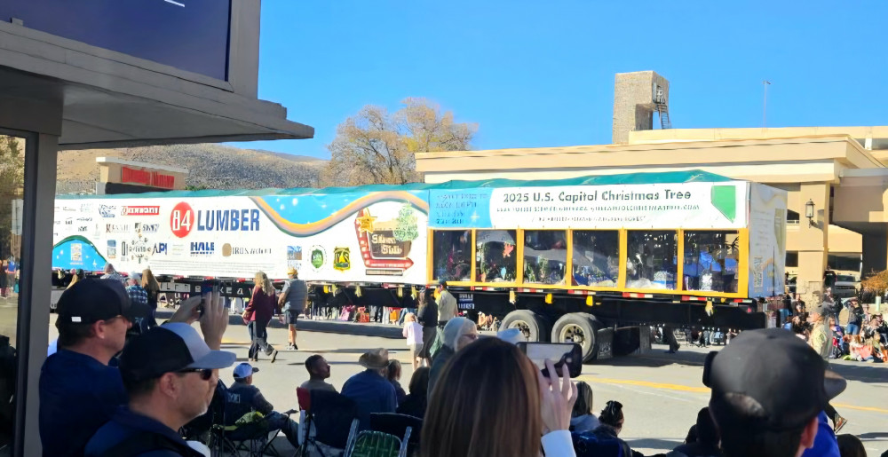 我们到得晚了一点点, 秒到了一点点今年白宫的圣诞树, 附近的玫瑰山雪场砍的, 游行完了就送白宫去。