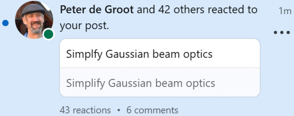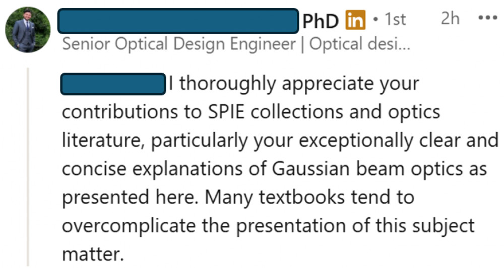 我目前在 LinkedIn 上有约3千4百个 Followers,基本都是光学专业的。我有新帖他们会收到提醒的,所以反应这么快。我的学术帖受欢迎的程度这么高使我觉得有义务多写些。