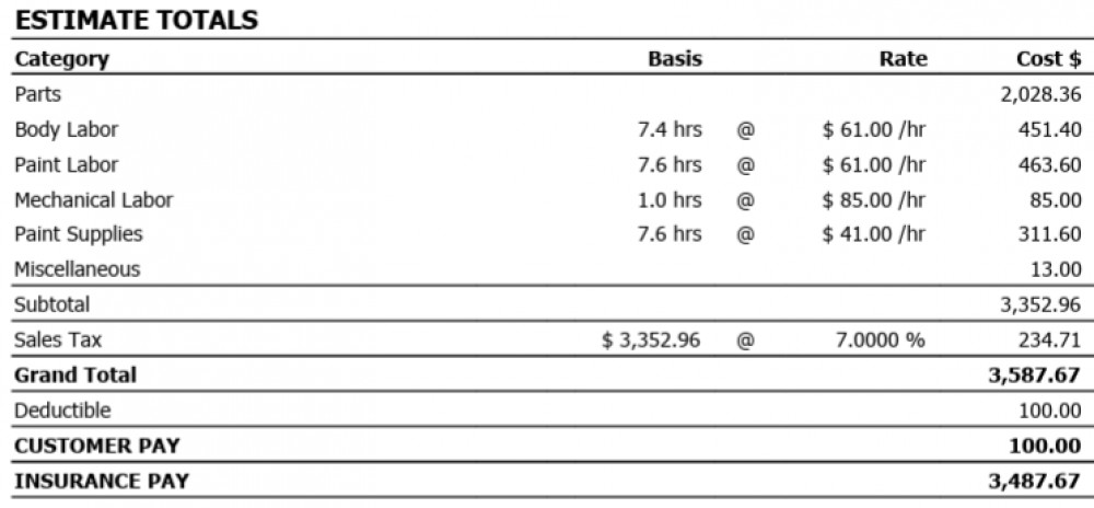 前几天撞鹿的修车费 $3588,比我预想的少些,我出$100