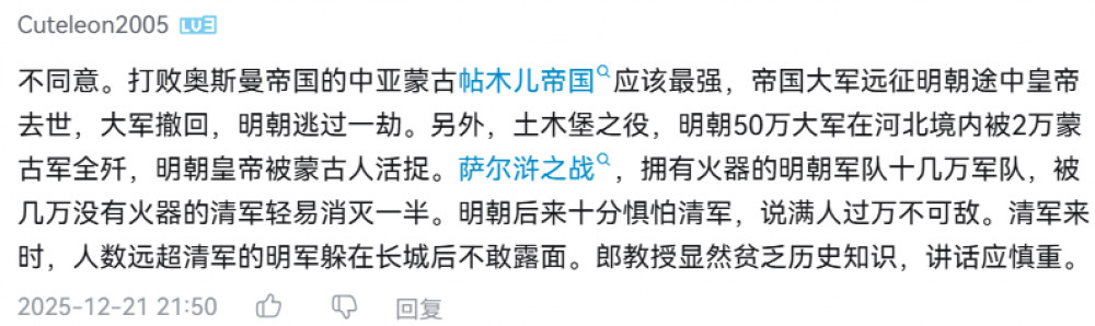 2474人点赞,3百多回帖。我昨天回了贴,目前没人跟我辩论。我原来没怎么关心郎某,现在知道也是个信口胡说的人。
