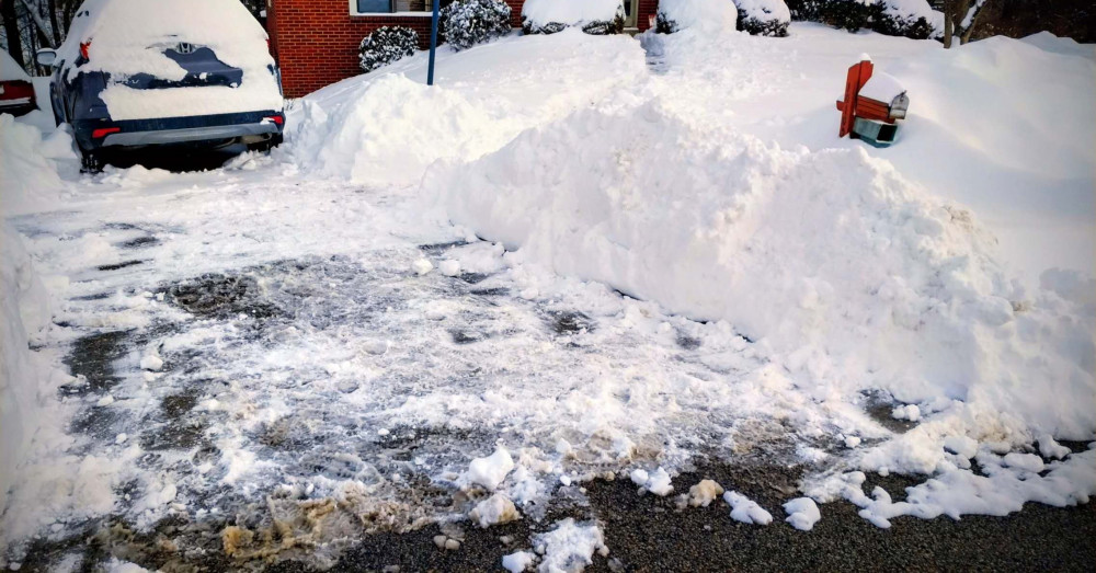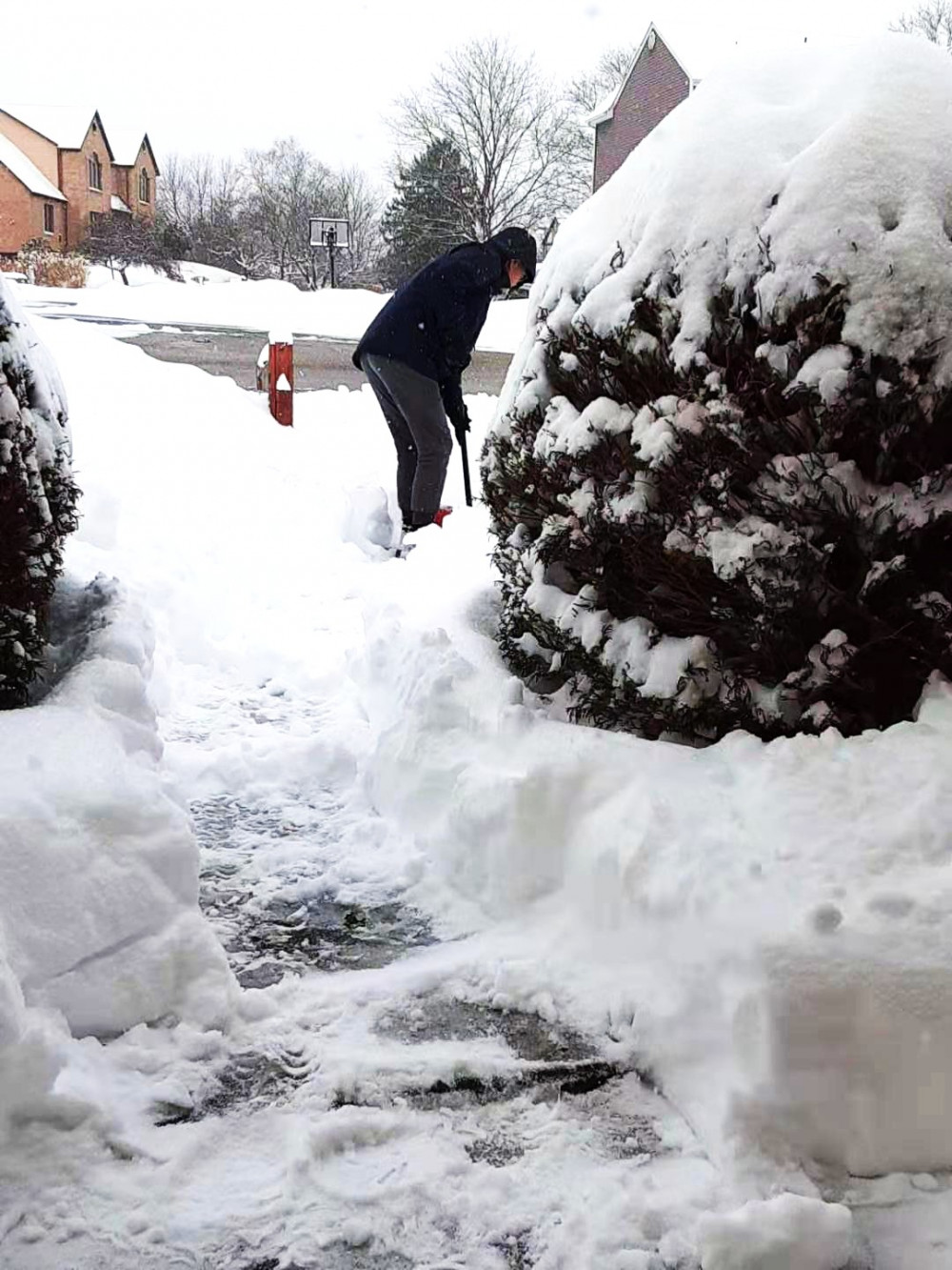 奋战1个多小时,铲出条雪路,有点累,但不过分