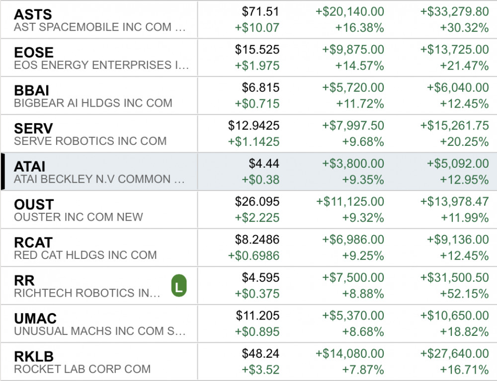 这些是今天表现好的股票。平均下来账号今天涨了4个多点。感恩节的时候基本是买了都有,被我卖掉的IONQ, CRWV今天都爆发了。所以昨天都还是有很多可以买的。有5天可以优化组合,真是遍地都是钱啊。