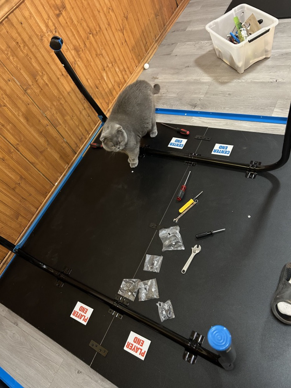 为了筹备第一节世乒赛 我们把沉重的乒乓球台在户外打开包装蚂蚁搬家运输到地下室。然后加班加点看着说明书安装,期间返工不断,而且摔断了一个轮子,两个球面还不在一个水平面上。不论如何敢在世乒赛开幕前完成安装。