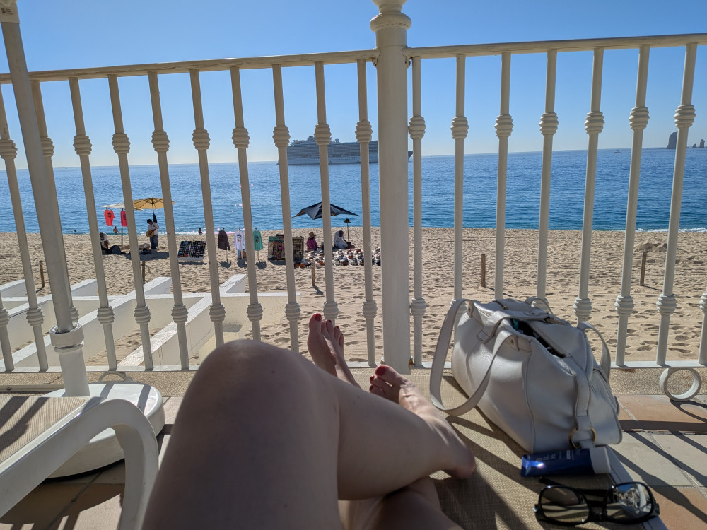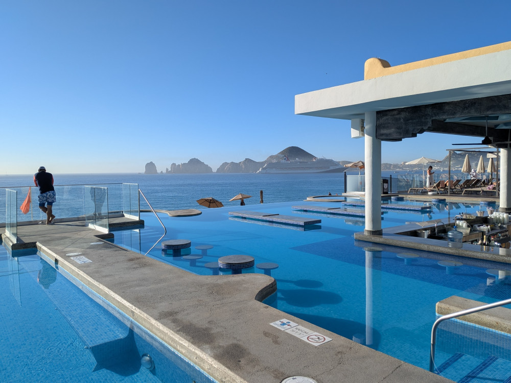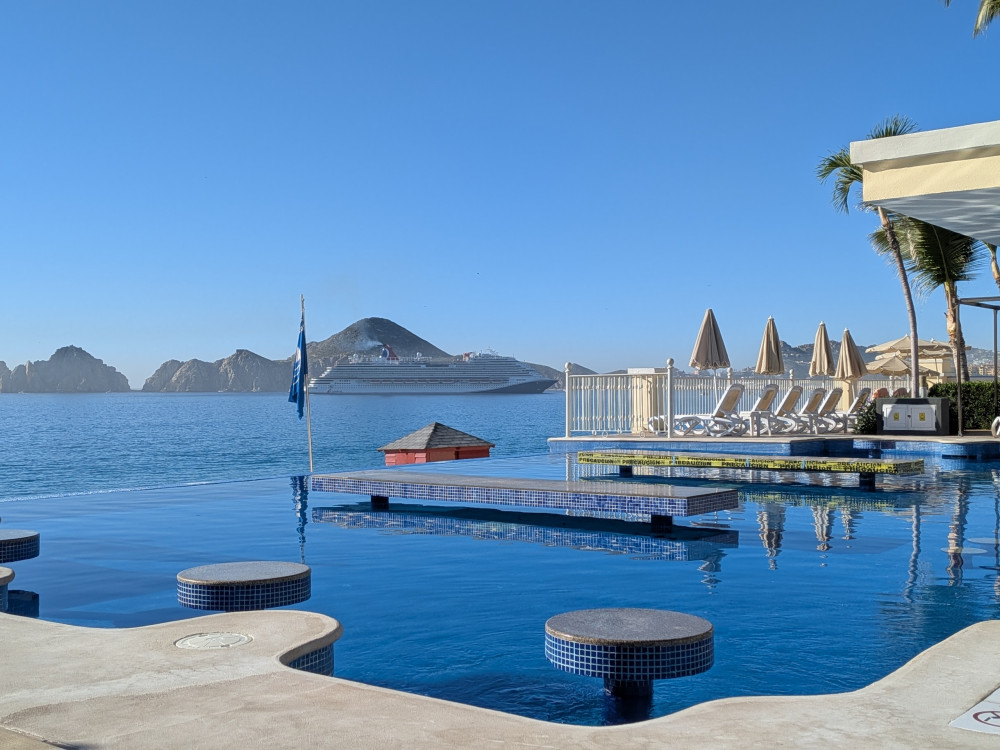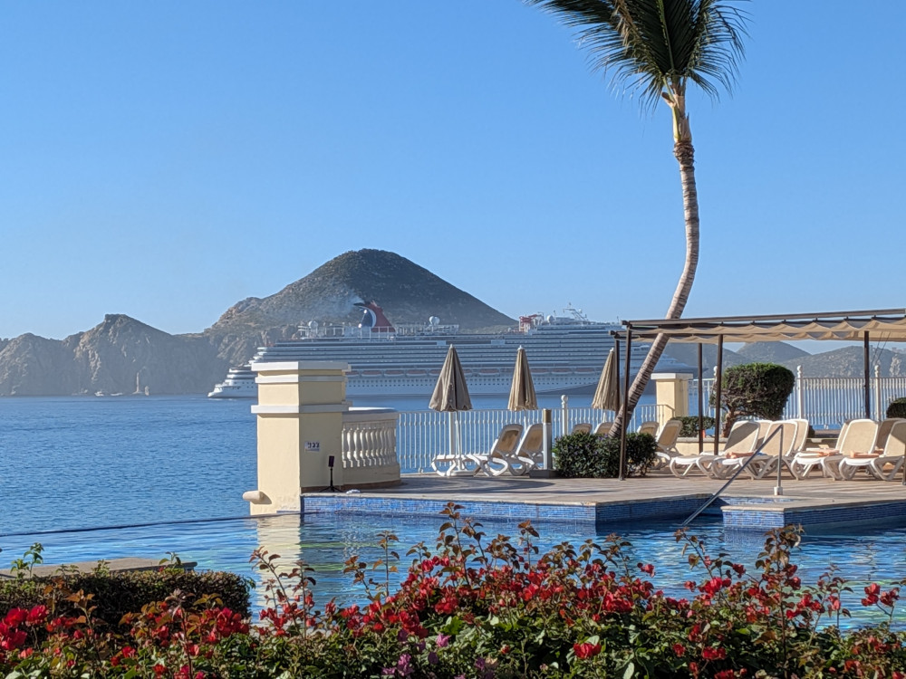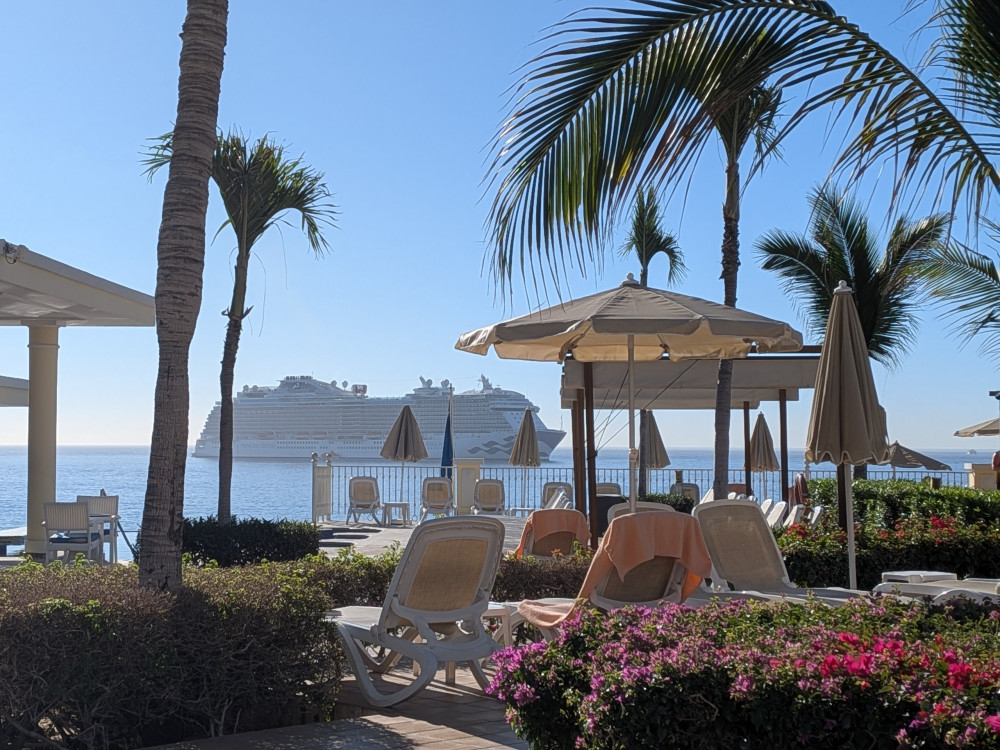 早上起来海上还有雾气,海湾里停着公主号和嘉年华邮轮。目测美西的邮轮航线,Los Cabos是邮轮主要访问地点。Riu Palace修得高大上,很有殖民地时代的风格。但墨西哥的贫富分化令人发指。从酒店去机场路上,看见路边很多当地人住的房子,是拿几块木板和塑料布拼起来的,四面透风,窗户就是几个大洞。很多人的家是倚靠着一棵仙人掌盖的,大概有仙人掌当墙会稳当,不至于被风刮倒。全包酒店的服务员的工资在$300-500一个月。但住一天酒店的费用,也是这么多。周围还有一天1千+的酒店。小红书上大部分中国人推荐去的也是6-8百一天的。